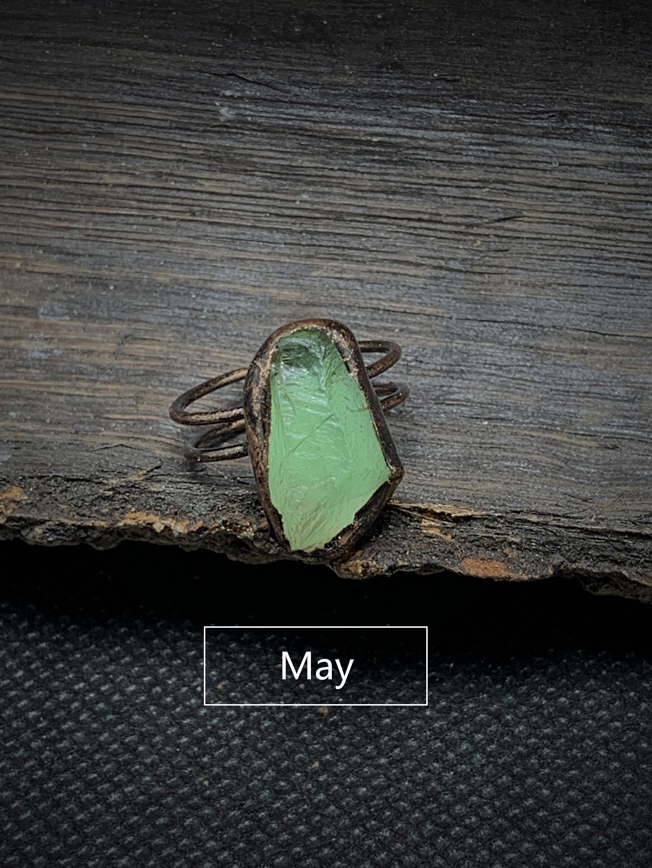 Retro Style Twelve Birthstone Natural Raw Gemstone Unshaped Opening Adjustable