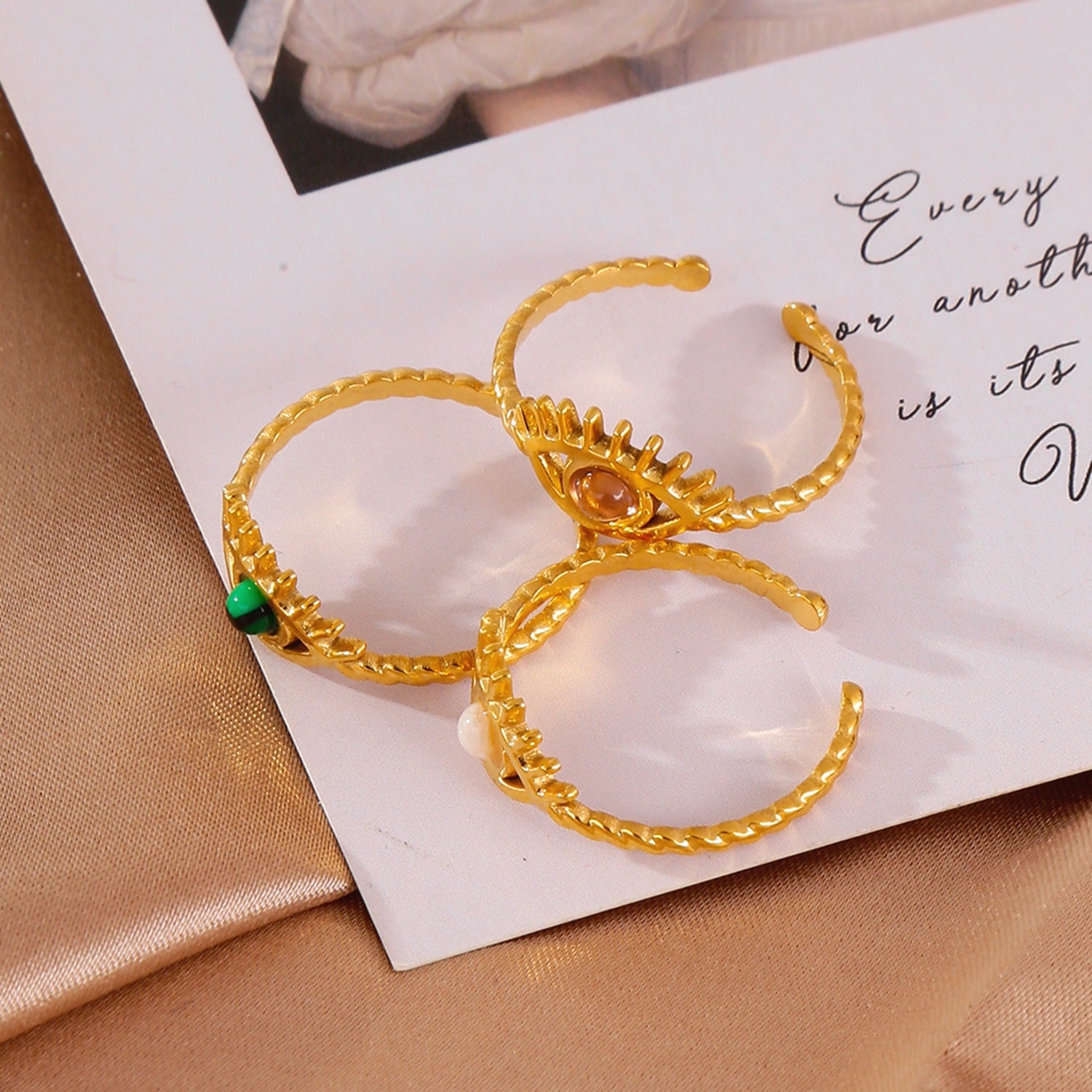 18K Gold Wisdom Eye Gemstone Inlaid Ring