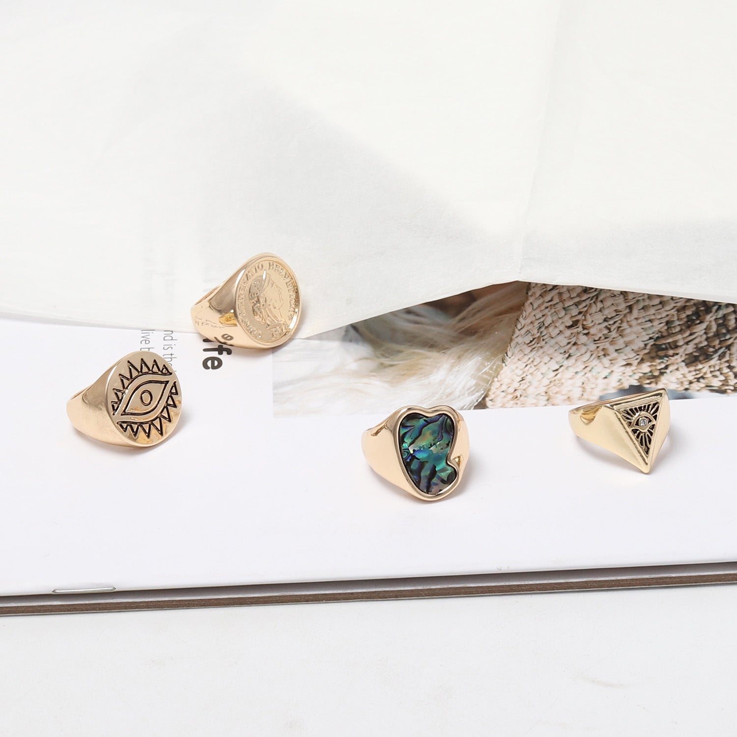 Color: Eyes black, eyes gold, triangles, human head gold, human head black drip glaze, abalone shell