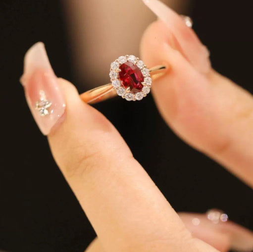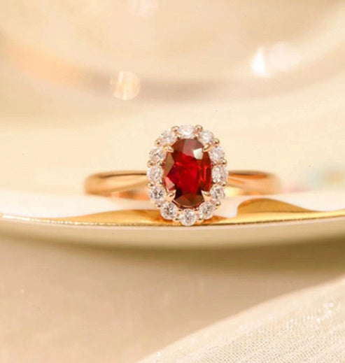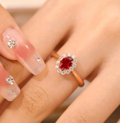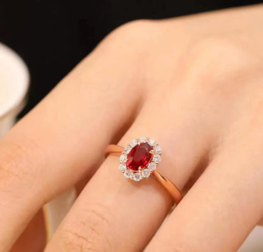 Gold Pigeon Red Blood Gemstone Sterling Silver Inlaid Ring