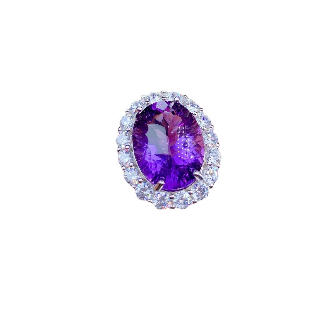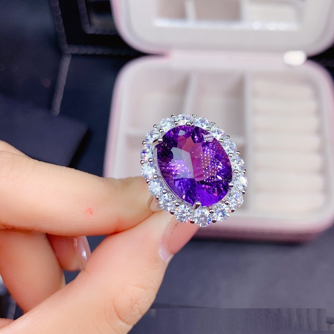 Natural Amethyst Ring S925 Silver Female Accessories Main Stone
