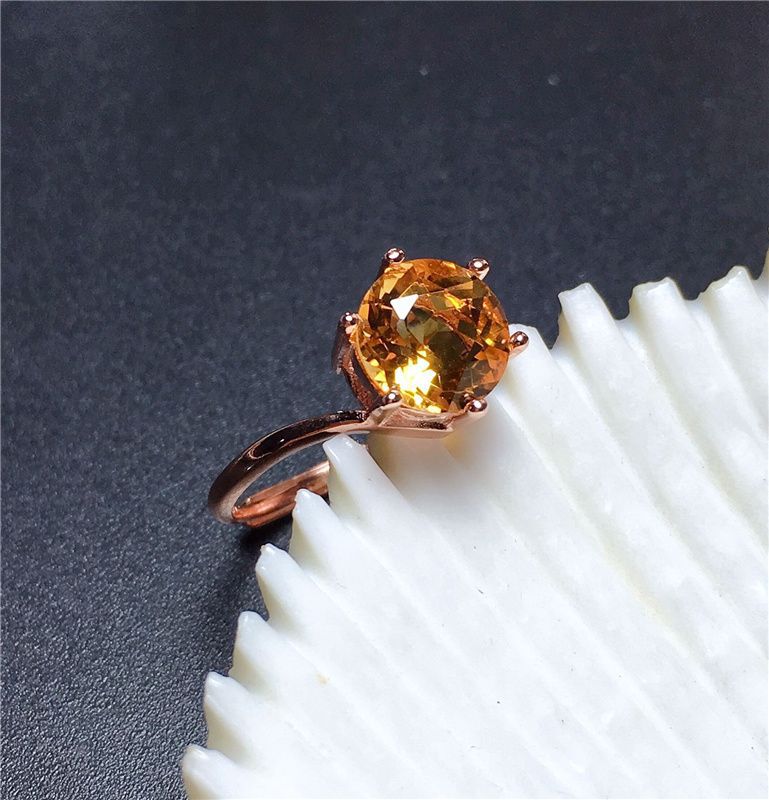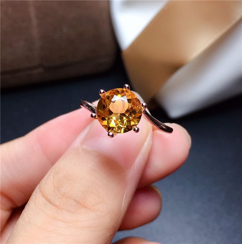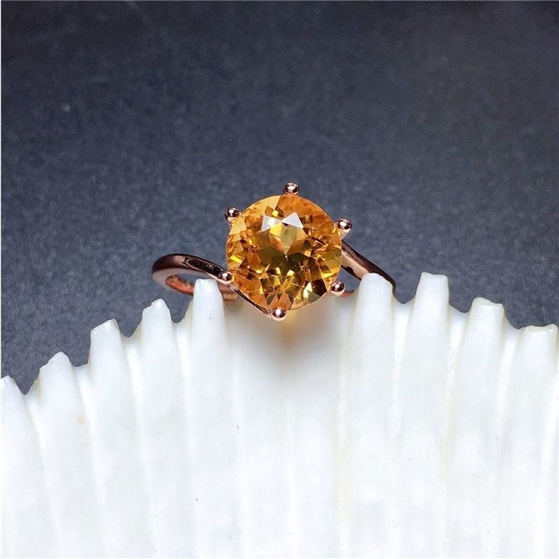 Natural Citrine Gemstone Ring Female Plated S925 Silver