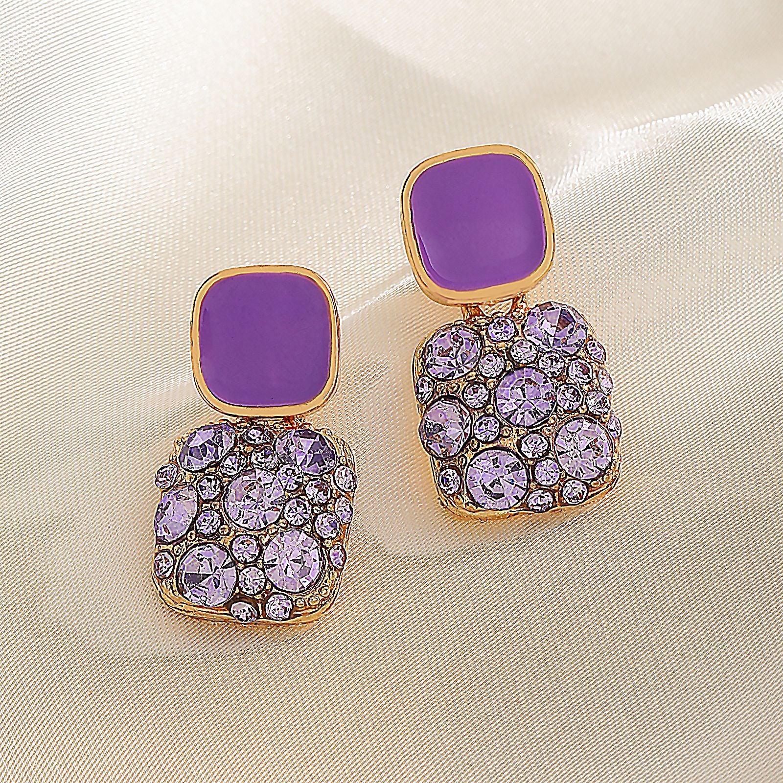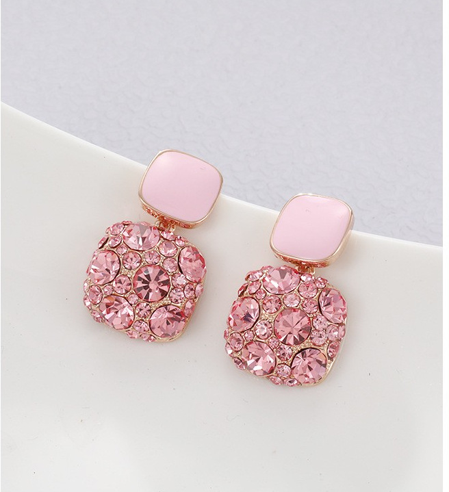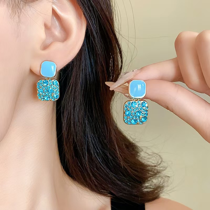 Oil Dripping Full Diamond Square Earrings Light Luxury High-end Fashion Simple