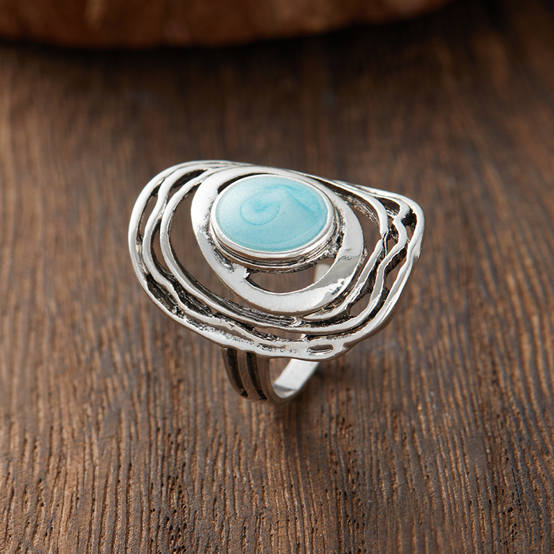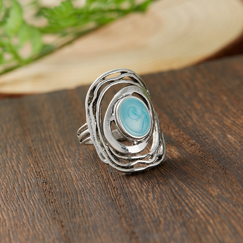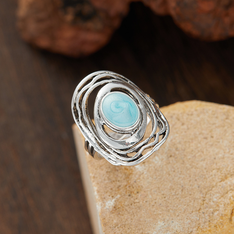 Round Hollow Retro Minority Design Blue Gemstone Ring