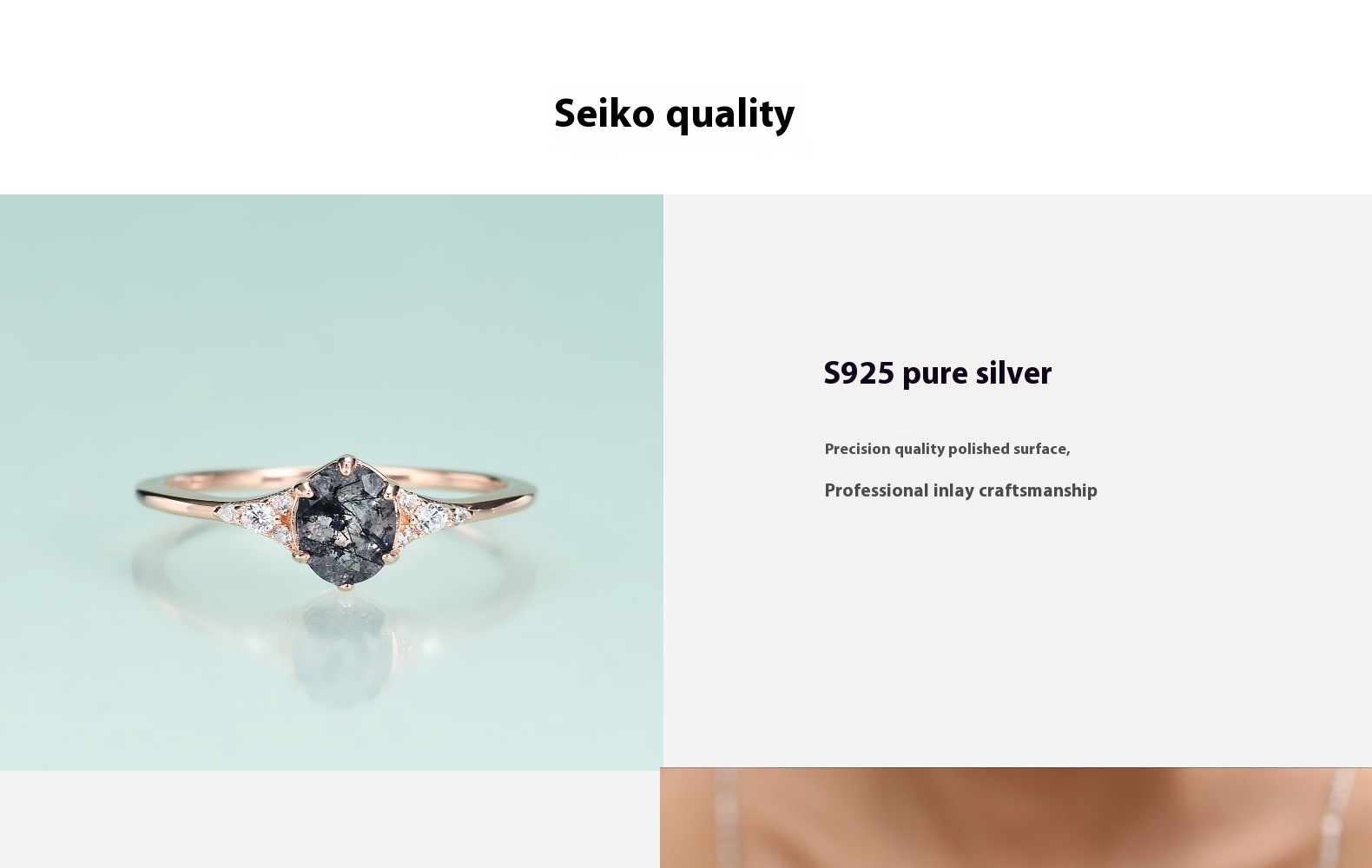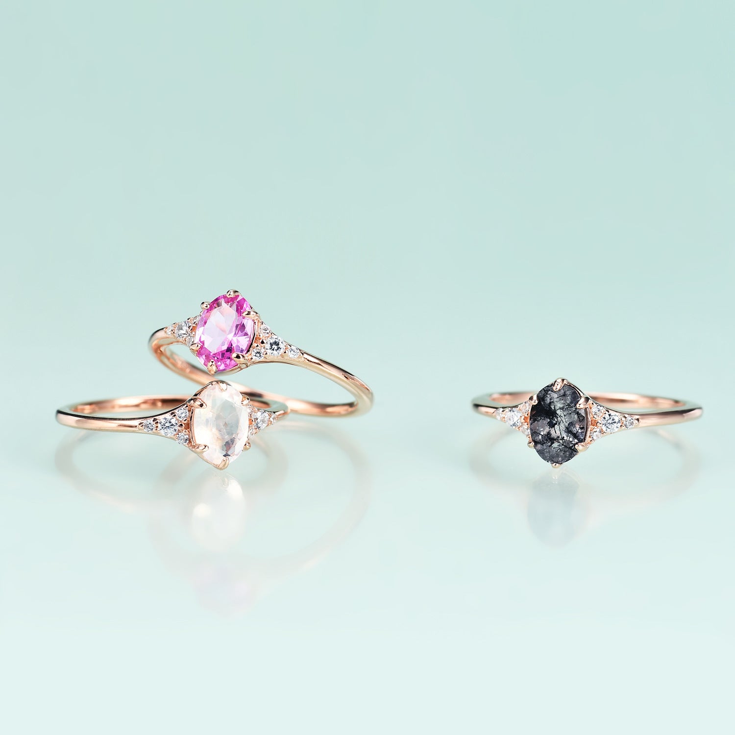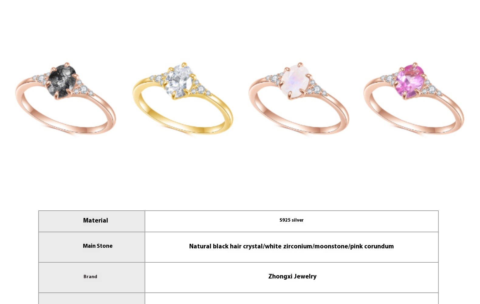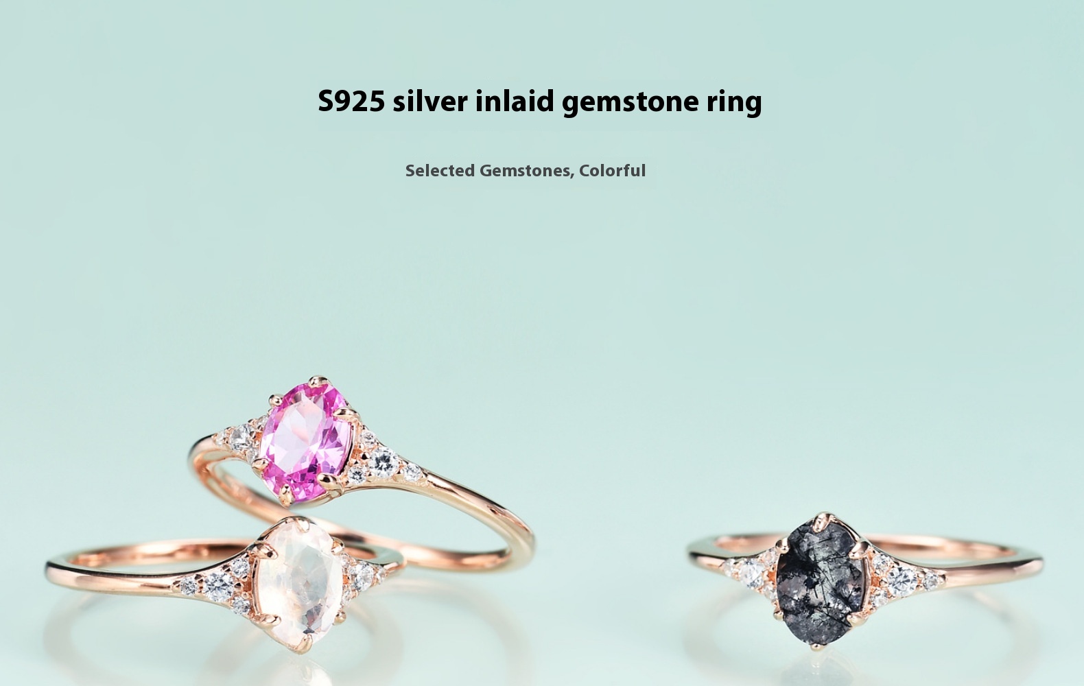 Simple Rose Gold Gemstone S925 Sterling Silver Black Hair Crystal Ring