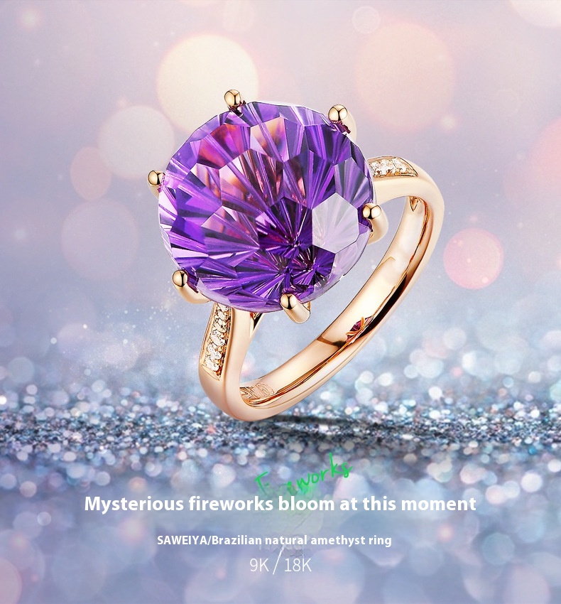 Six-claw Amethyst Elegant Colored Gemstone Ring