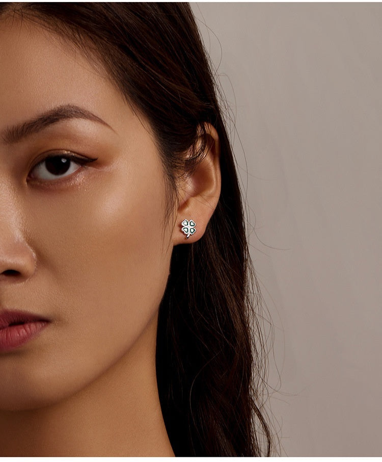 White Gold Plated Textured Green Dripping Lucky Stud Earrings