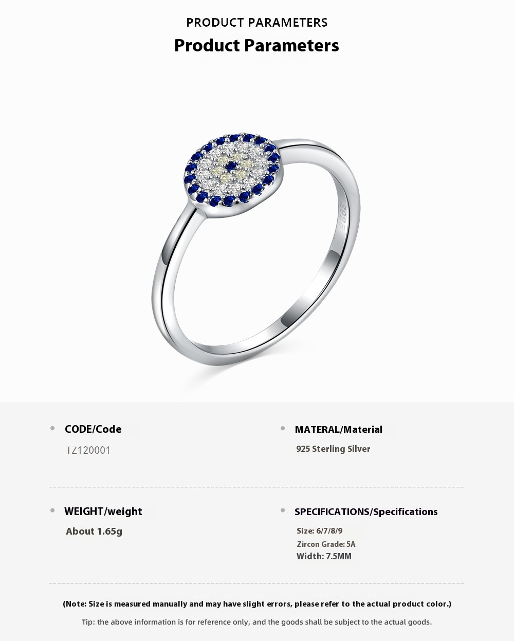 Women's Fashion S925 Sterling Silver Blue Eye Ring