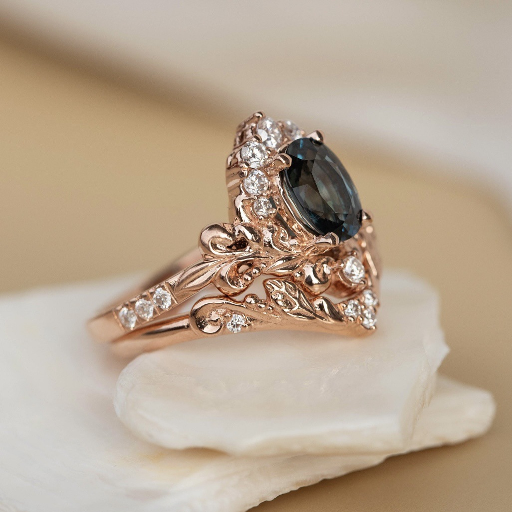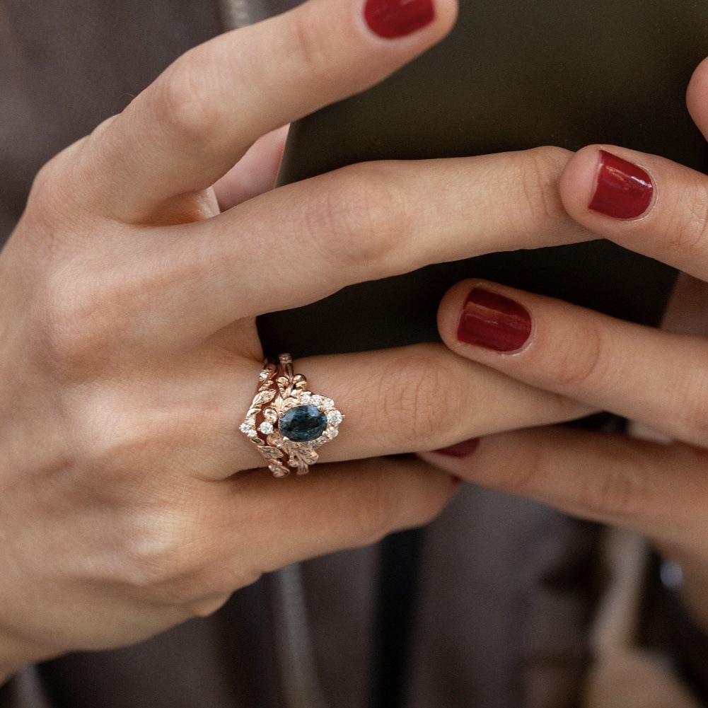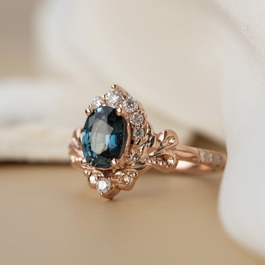 Women's Inlaid Blue Crystal Ring Rose Gold Branch Flower