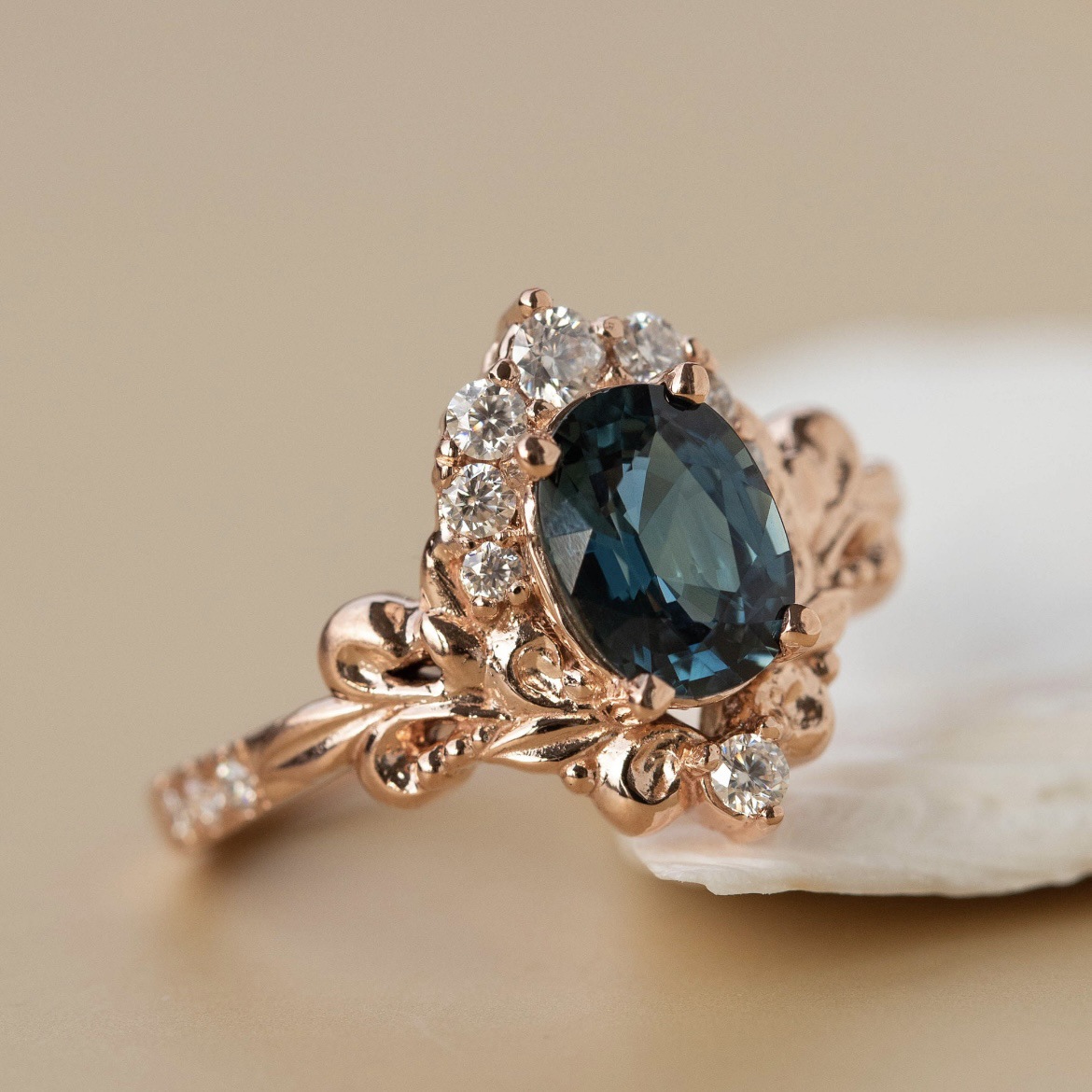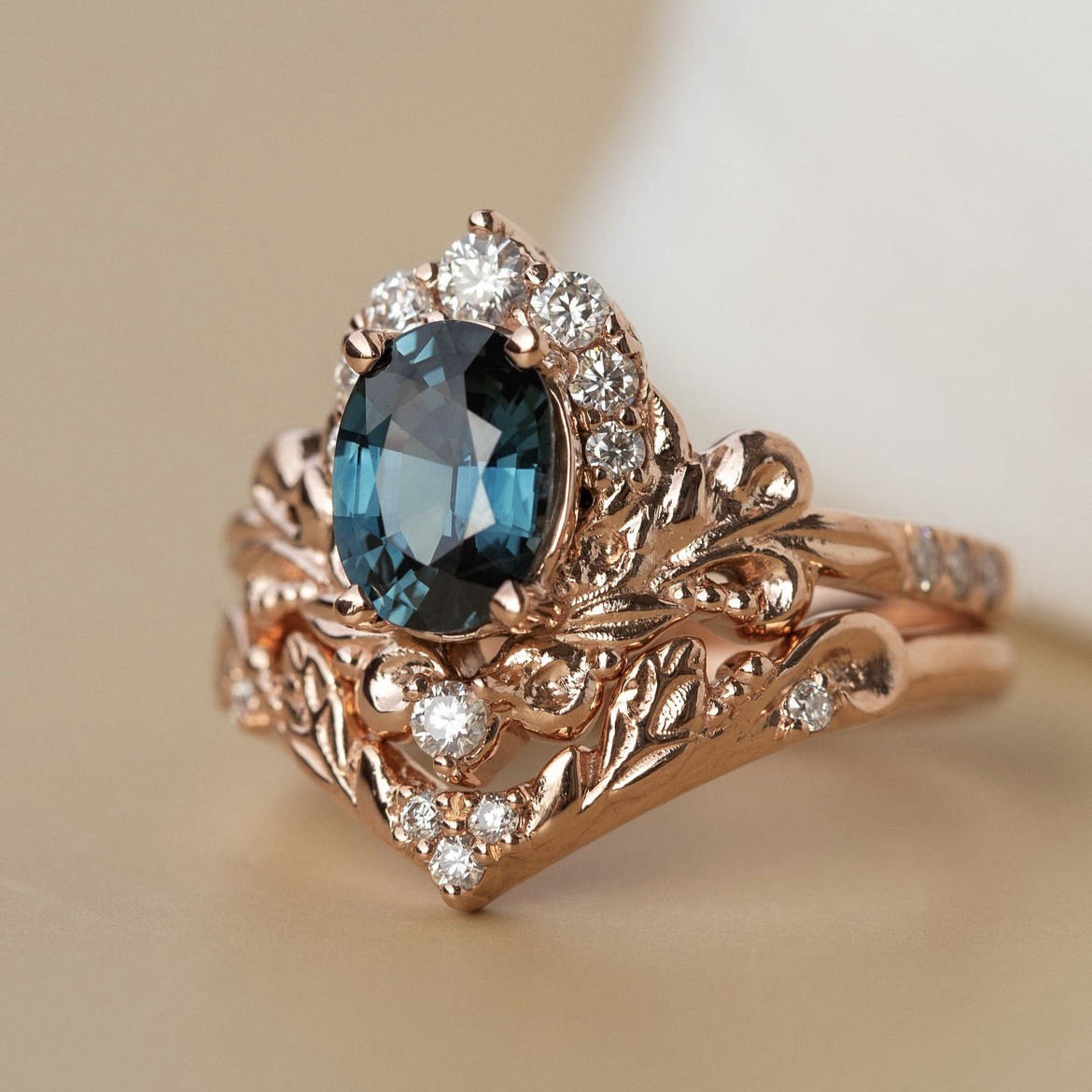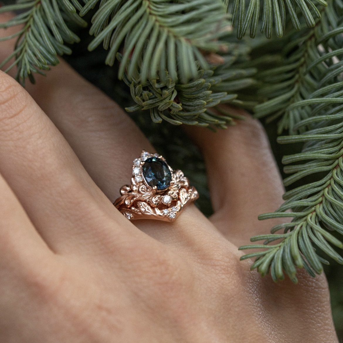 Women's Inlaid Blue Crystal Ring Rose Gold Branch Flower